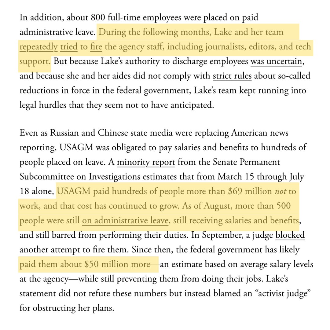 1/ New reporting shows that Kari Lake's takeover and ongoing destruction of the U.S. Agency for Global Media (USAGM) has been mired in incompetence and abuse of taxpayer dollars.