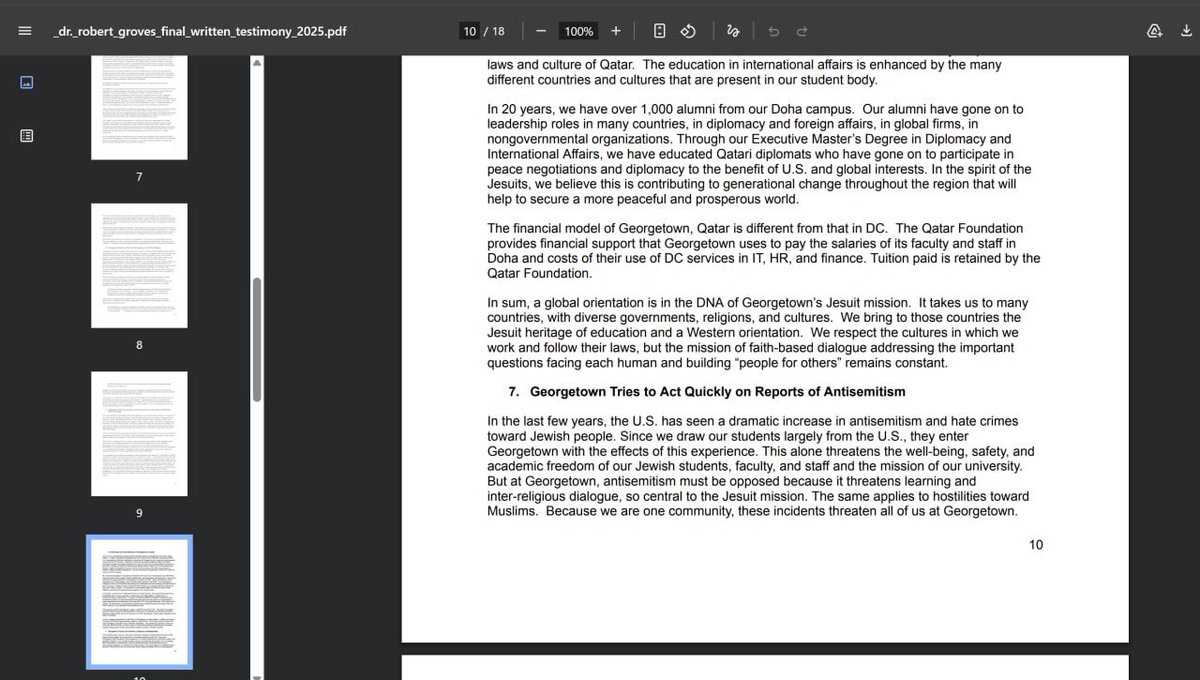 Remember, in July of 2025, Georgetown President Robert M. Groves admitted in his testimony to the House Committee on Education and the Workforce that Qatar helps pay for some of Georgetown's faculty and staff: