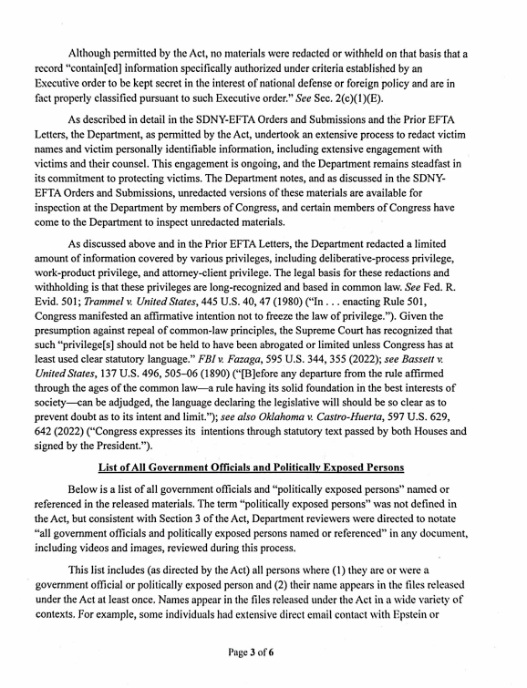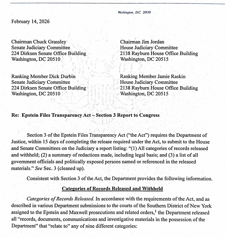 NEW: DOJ sent Congress a six-page “report,” as required by Section 3 of the Epstein Files Transparency Act. But DOJ’s list of “government officials” and “politically exposed persons” included in the produced materials is, like the redactions themselves, too much and not enough. 1/