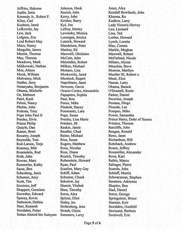 On one hand, the letter is missing multiple boldfaced names — like former Norwegian Prime Minister Thorbjorn Jagland and Steve Tisch — who are under fire because of their dealings with Epstein. 2/