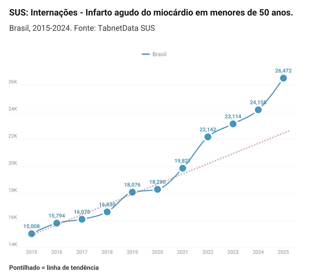 Infartos EXPLODIRAM em jovens após as vacinas COVID-19. Internações até 50 anos. Com linha de tendência, para que não reste dúvidas.