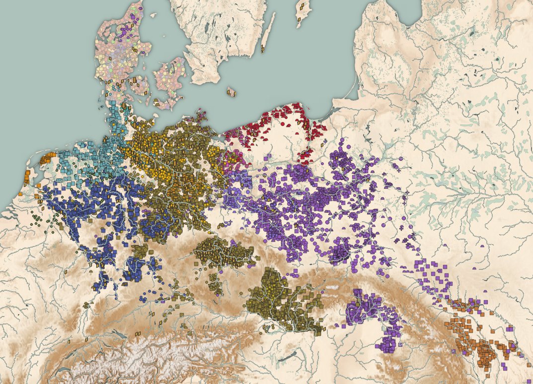 The Positions of Tribes were cross-referenced from the authors that mention them, if a position was given, onto the geographically corresponding or nearest possible cluster of archaeological sites.