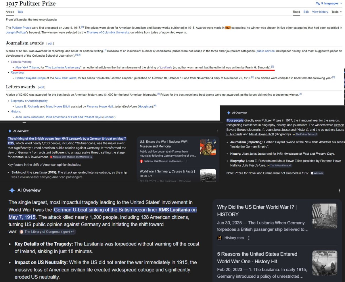 Among its first four recipients was an article on the Lusitania Sinking. This is notable as outrage over that is what first turned American opinion against Germany.