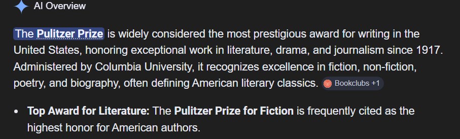 Pulitzer Publishing Decoded 1. The Pulitzer Prize is the most prestigious award for writing in the United States.