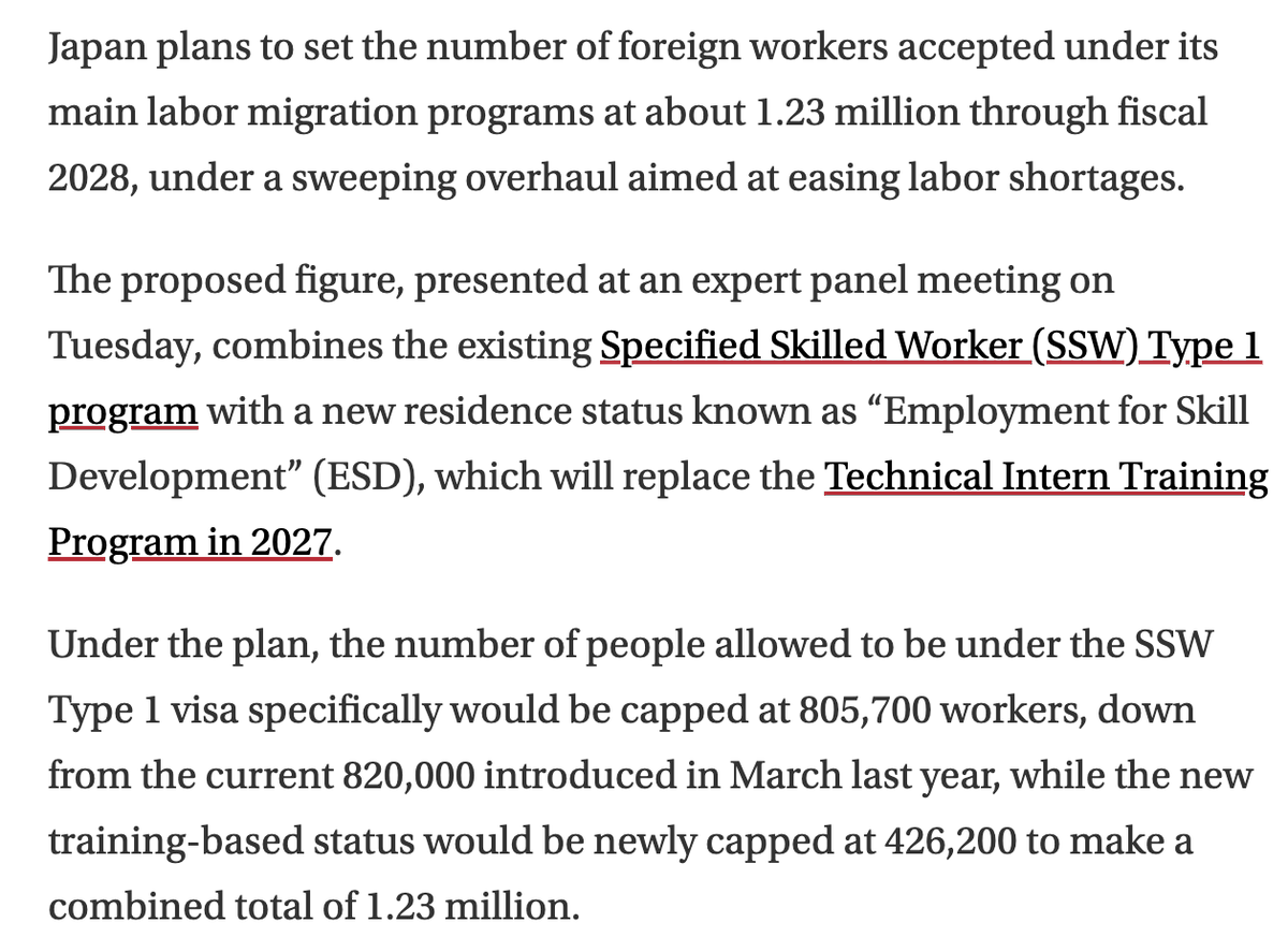 Japan went from officially having "no immigration policy" to a formal system with a cap of 820,000 foreign workers. Japan's Muslim population has gone from ~110,000 (2010) to ~420,000 (end of 2024). There are now 149 mosques.