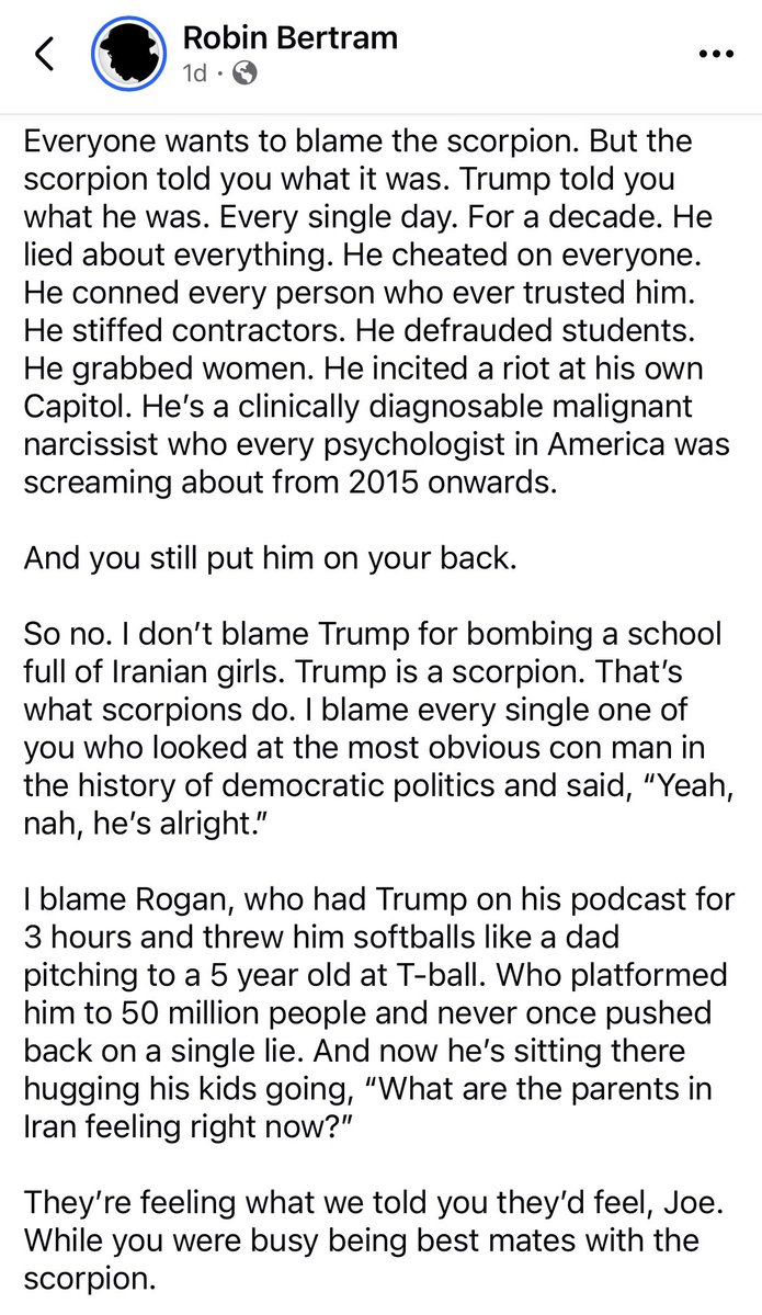 Voy a dejar aparte las cuestiones sobre diplomacia, política exterior o política en general que no son mi ámbito y me voy a detener en otras consideraciones:nytimes.com/2026/04/07/us/…