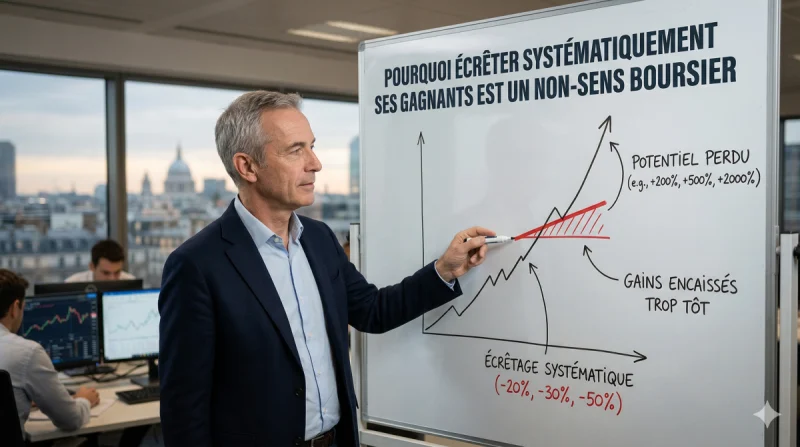 Elle revient le plus souvent à vendre ses meilleurs actifs trop tôt, à conserver trop longtemps des positions médiocres, et donc à affaiblir exactement ce qui fait la performance de long terme en Bourse : la captation des très gros gagnants. La littérature ne permet pas de dire qu’une telle règle condamne mécaniquement chaque investisseur à sous-performer chaque année. En revanche, elle montre clairement qu'écrêter arbitrairement les gagnants tout en ne touchant pas au reste réduit l'espérance de performance à long terme et rend plus difficile la surperformance face à un benchmark.
