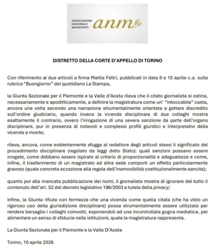 2. Contesto. Mattia Feltri su La Stampa, 9 e 10 aprile, scrive due rubriche in cui definisce la magistratura "intoccabile casta" a partire da procedimenti disciplinari che secondo lui si chiudono senza sanzioni visibili ai cittadini.