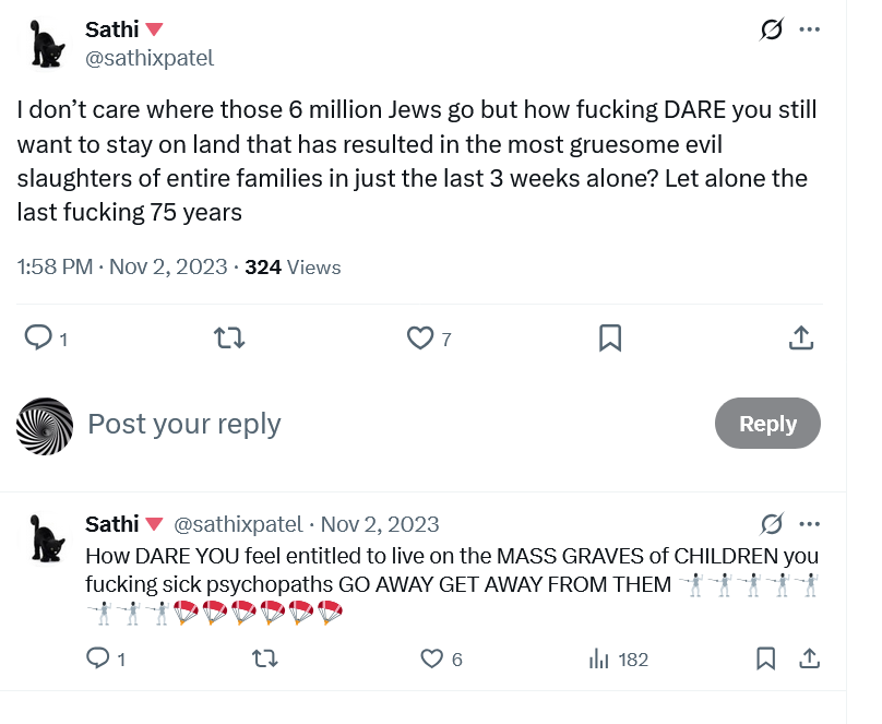 How did they select fanatically antisemitic Sathi Patel for a panel, when she celebrated October 7, says "I love Hamas", and wants 6 million Jews gone? Oh, and India too.
