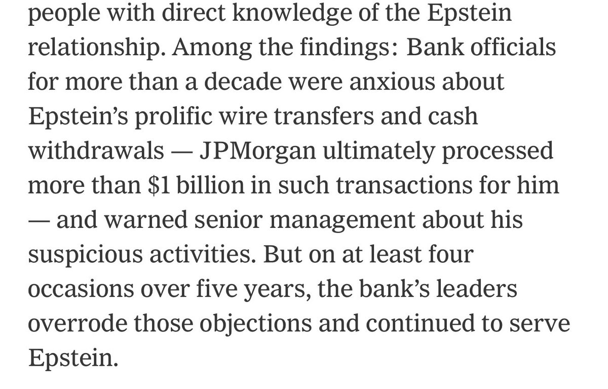In September, we got new explosive details about JP Morgan’s deep relationship with Epstein. The reports contained shocking details about how bank execs blew off internal warnings for years to keep Epstein on as a client, enabling his trafficking. nytimes.com/2025/09/08/mag…