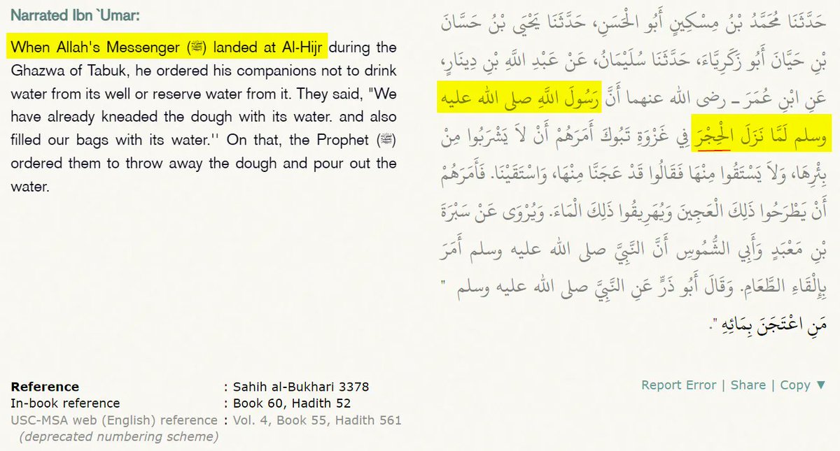 Allah's Messenger (ﷺ) landed at Al-Hijr during the Ghazwa of Tabuk