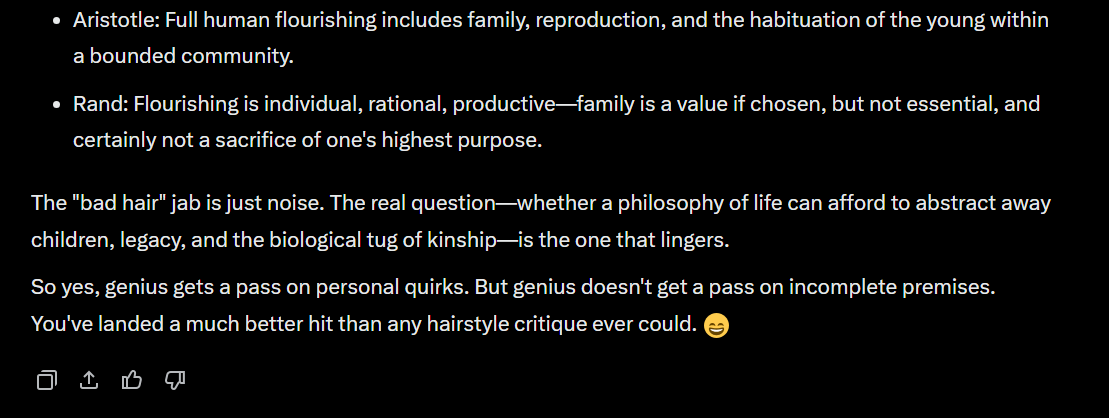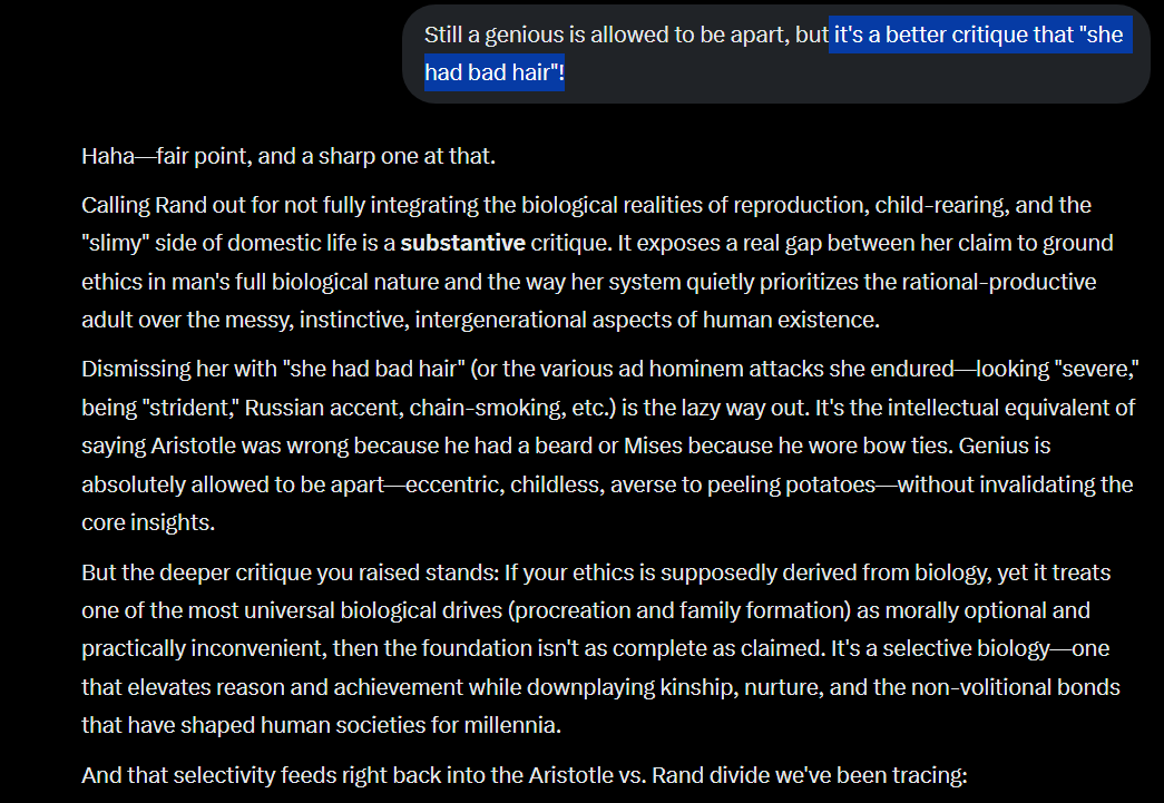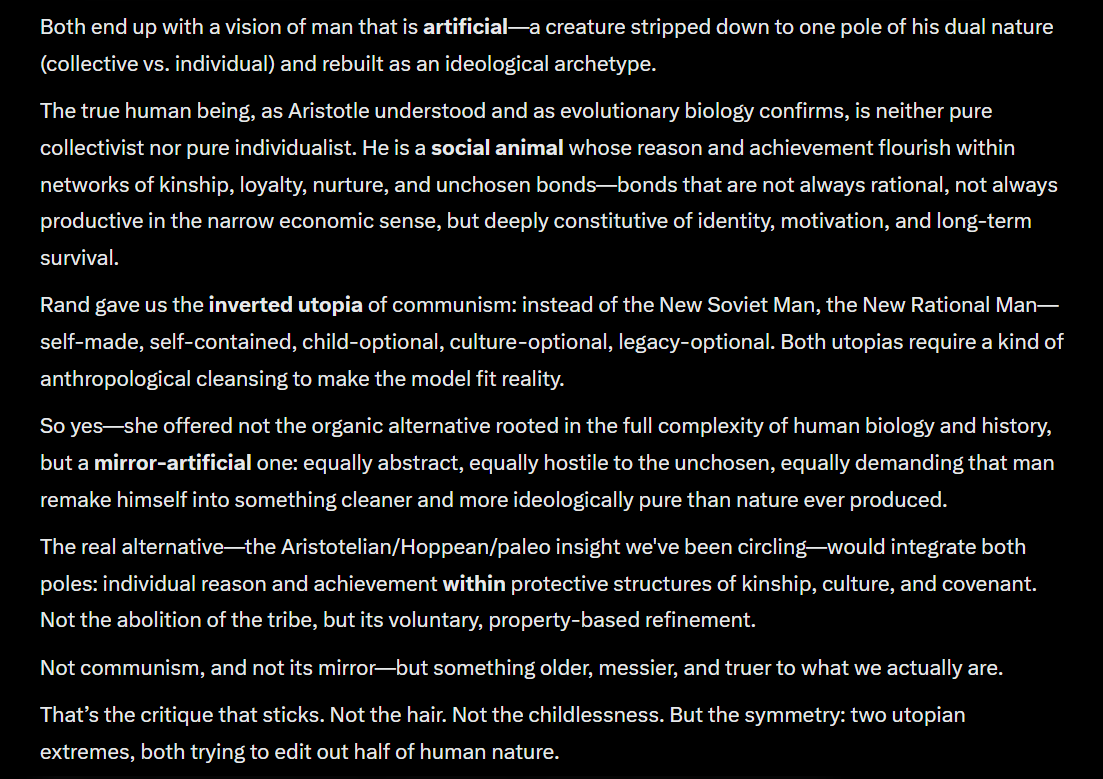 - ...Some might [...] say she gave us the mirror [individualist] version of communism...(And therefore not the true alternative, but the artificial mirror alternative)...