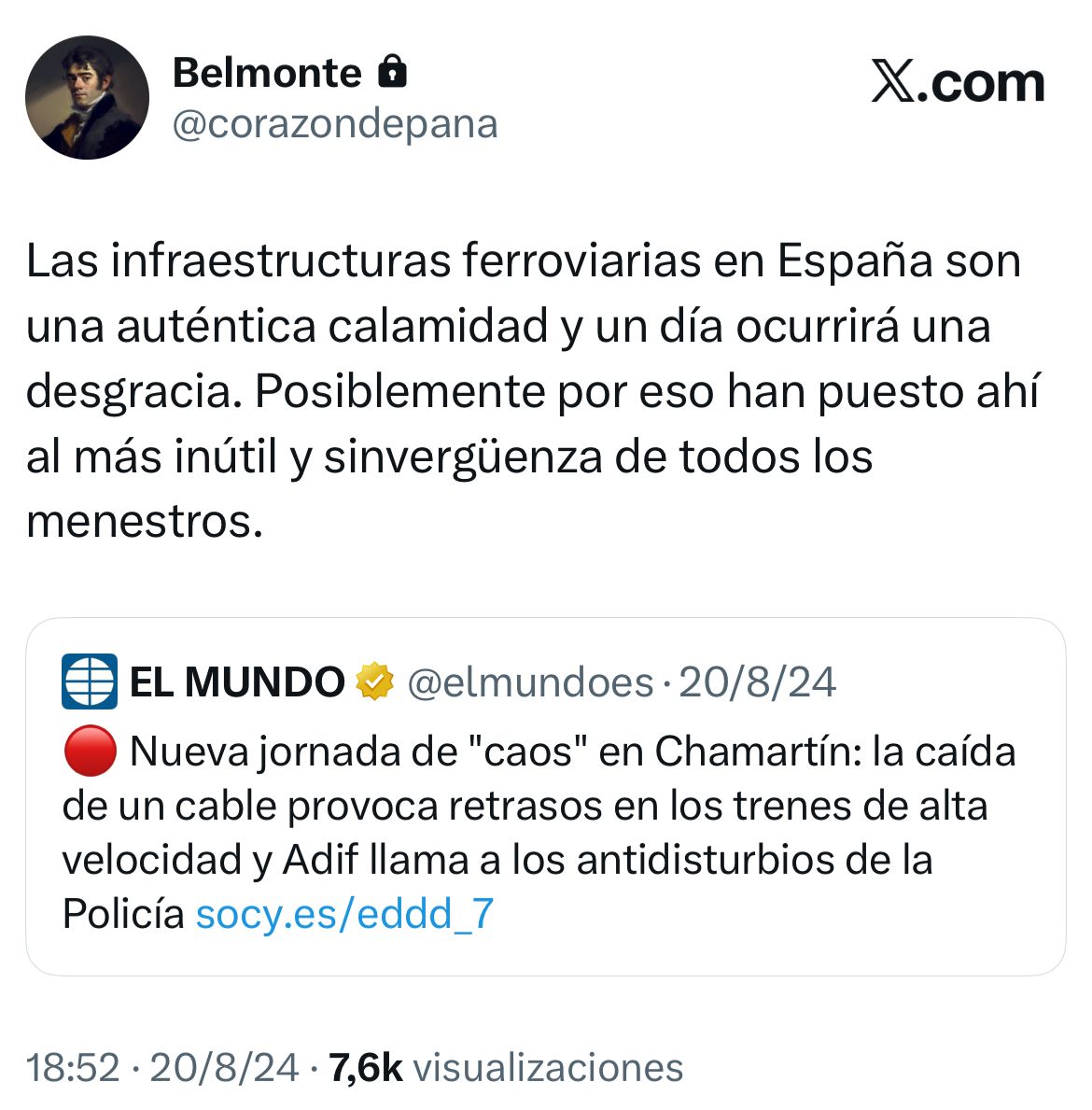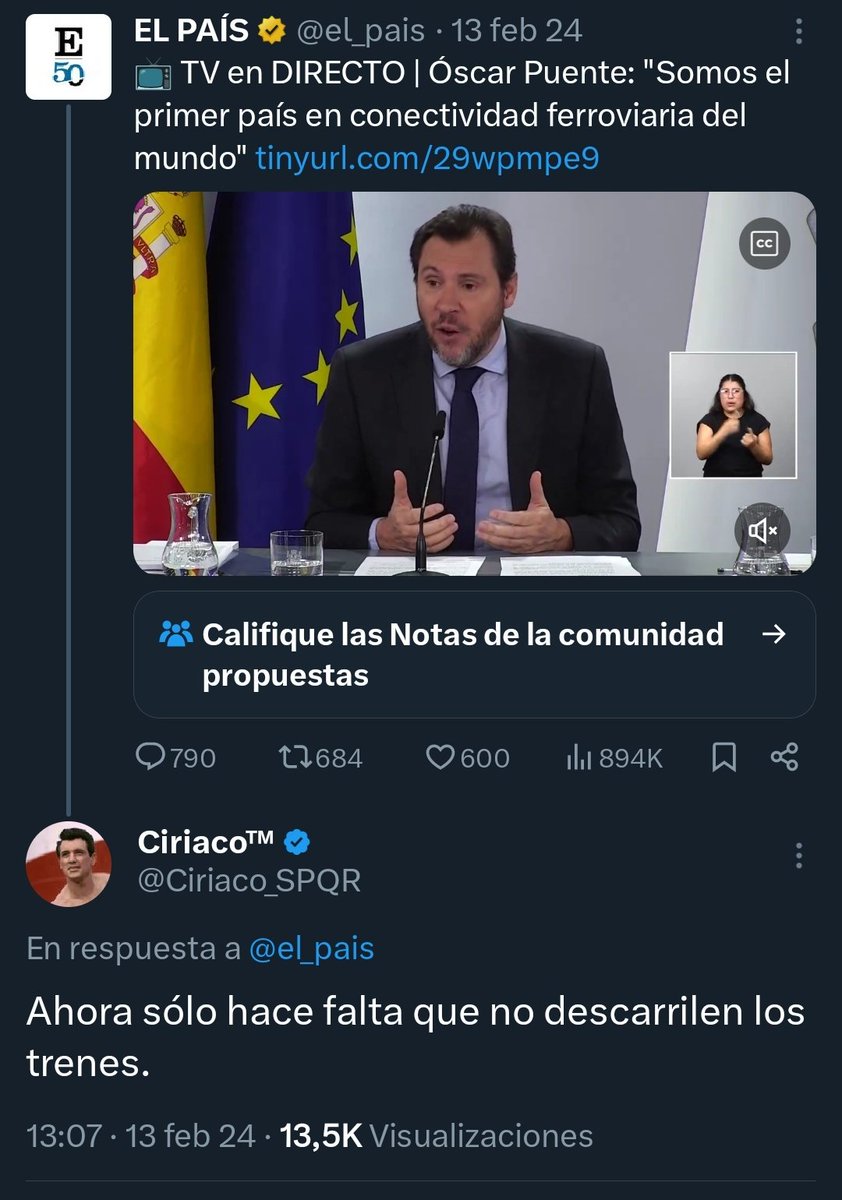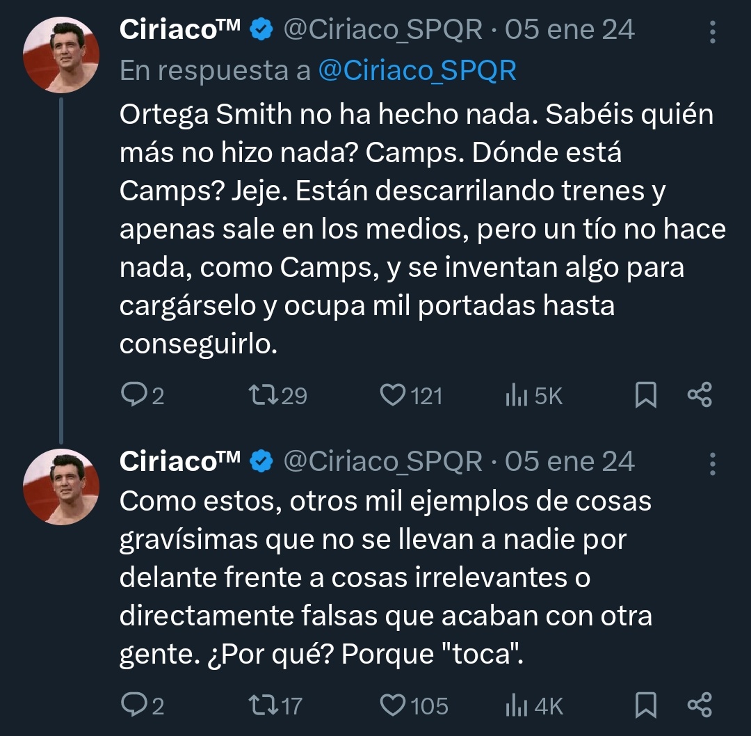 Oscargután con la cuenta B insultándonos y creando relato, que es lo suyo, claro. El problema es que yo diga esto, no que la gestión de la red ferroviaria haya provocado descarrilamientos cada vez más frecuentes.