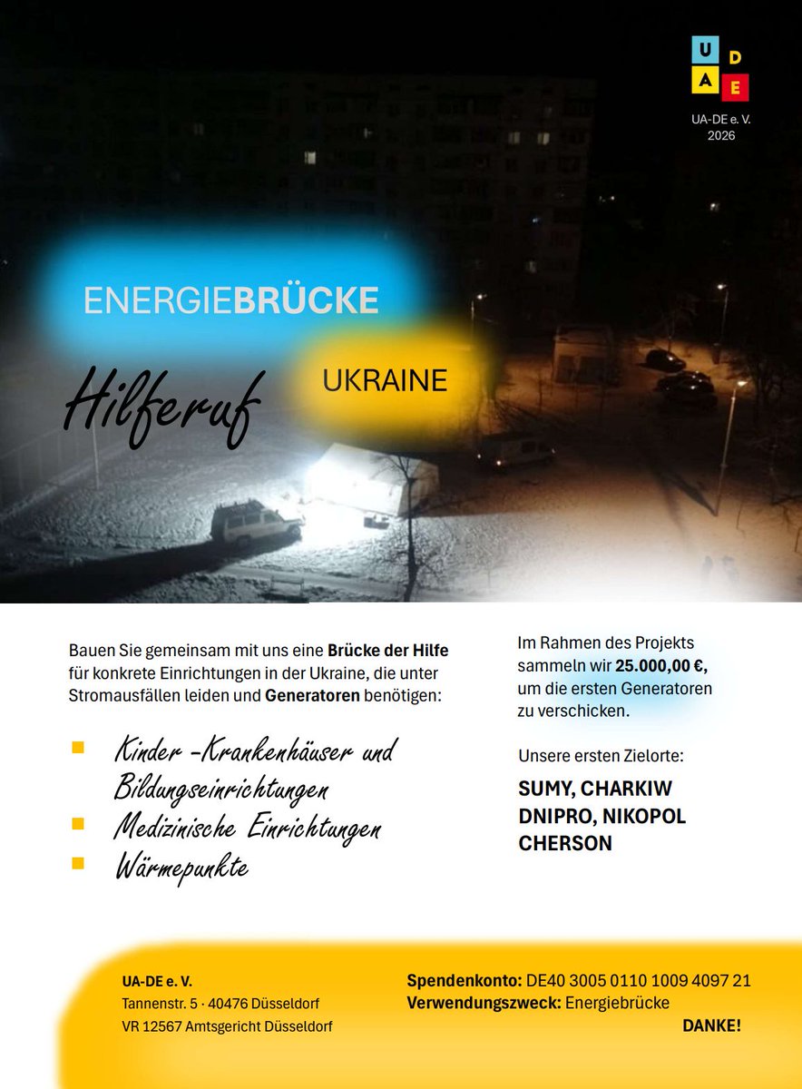 Und wir legen gleich los! Nächste Woche macht sich @henrylindo123 mit #truck22 auf den Weg nach Nikopol zum Reha-Zentrum für Kinder (Нікопольський медичний спеціалізований центр медико-соціальної реабілітації дітей" Дніпропетровської обласної ради ), um den ersten Generator auszuliefern. Mit dabei schon der zweite, der an deinen Wäremepunkt in Cherson geht.