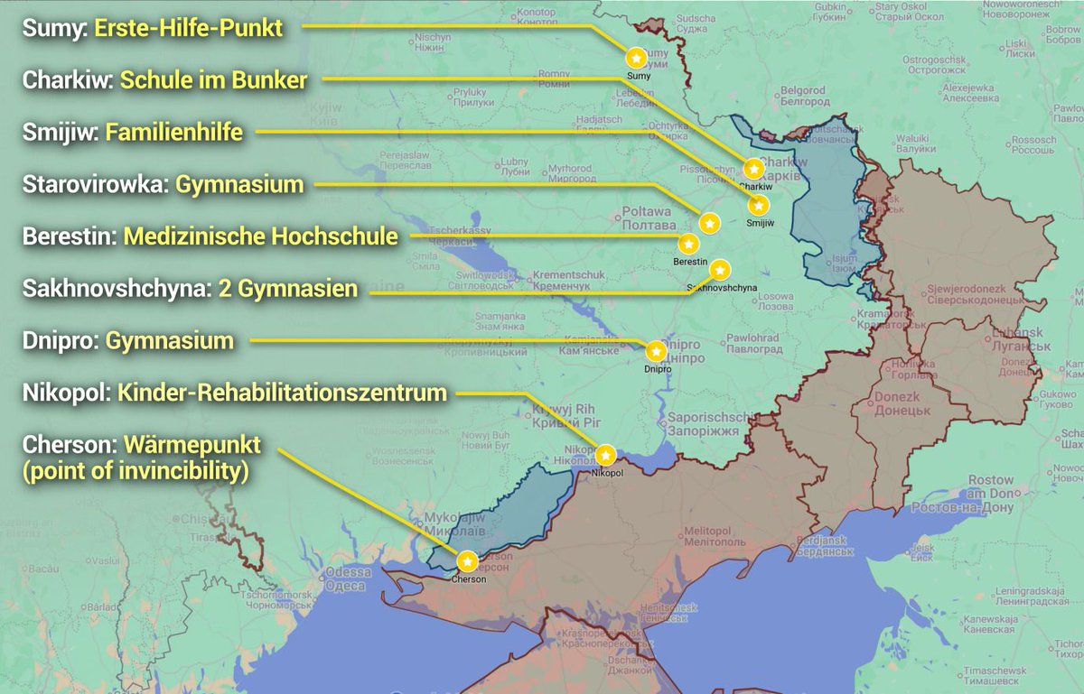 Schulen, Krankenhäuser, Wärmepunkte, ein Reha-Zentrum für Kinder - haben uns um Hilfe gebeten.
