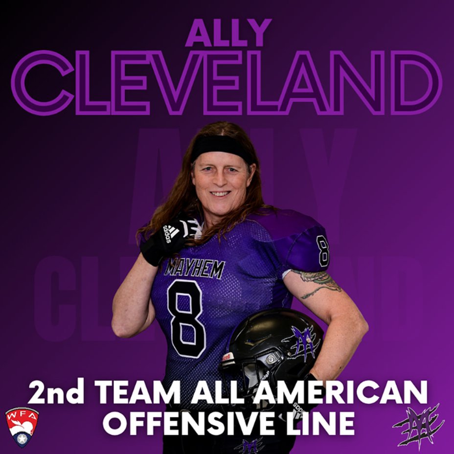 Cleveland has played in the WFA and WNFC for years on teams including the Los Angeles Legends, the Los Angeles Bobcats, the Utah Falconz, and most recently, on the Maine Mayhem.