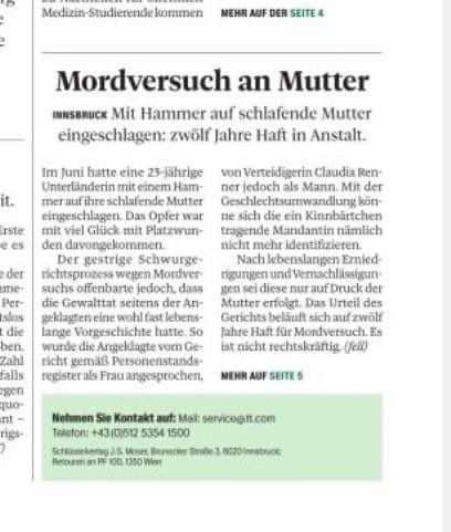 Hinter dieser Gewalttat steht ein Skandal, über den die Medien berichten und die Politik diskutieren sollte: die Verantwortung der beteiligten Chirurgen, Endokrinologen, Psychiater und Therapeuten - ermöglicht durch einen verblendenden medialen und politischen Hype um das Thema.