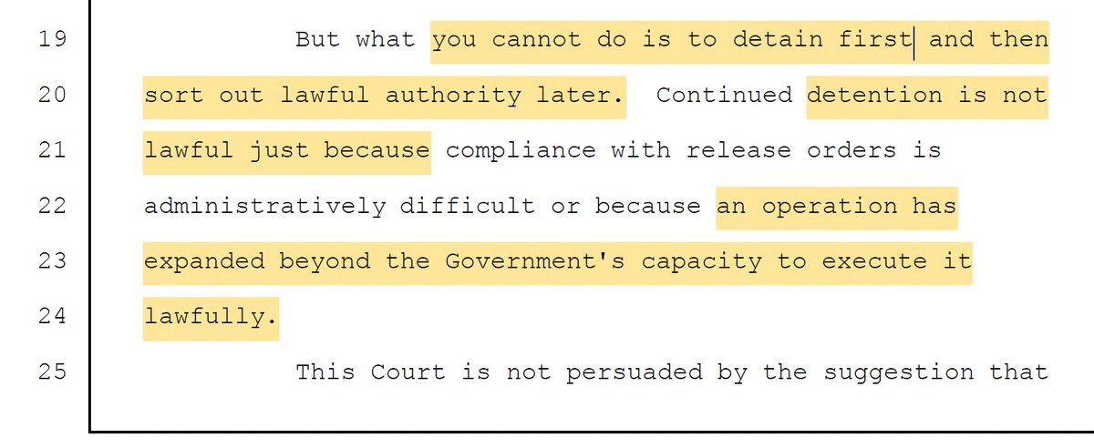 “[Y]ou cannot ... detain first & sort out lawful authority later. ... Continued detention is not lawful just because ... an operation has expanded beyond the Government's capacity to execute it lawfully.” ... 3/7
