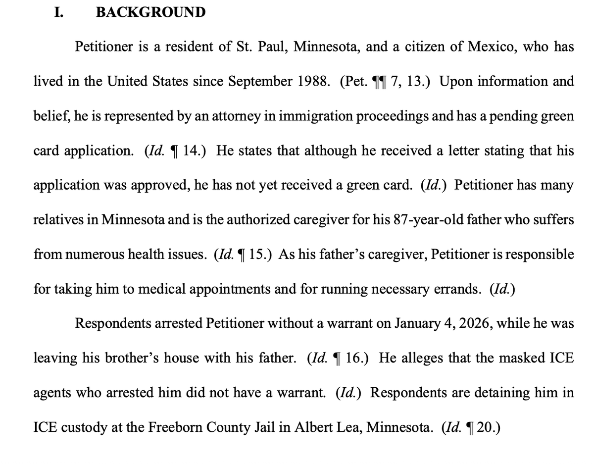 MEANWHILE: Judges in Minnesota continue rejecting the administration's efforts to lock up ICE's targets en masse. This man has been in the US since 1988 and says he's been approved for a green card.