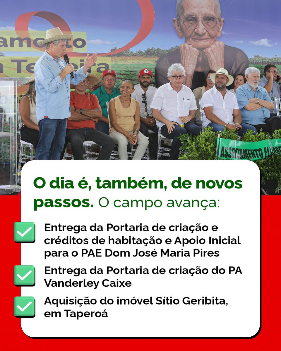 Elizabeth Teixeira presente! 📢 A entrega do novo assentamento em Sapé (PB) prova que a luta pela terra é a semente de um Brasil com mais comida e dignidade. Famílias assentadas, direito garantido e a resistência que vira horizonte. 🌱✊🏽 #AgriculturaFamiliar #Sapé