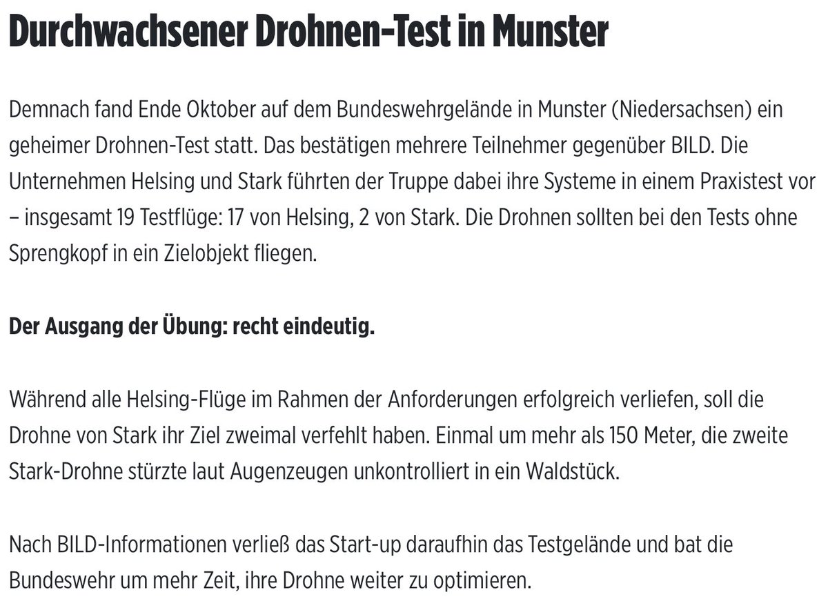 Tests mit der Bundeswehr & den britischen Streitkräften sollen laut Presseberichten jedenfalls verheerend gelaufen sein; die Drohne stürzte unkontrolliert ab & traf fast nie das Ziel. ft.com/content/ebdfcf…