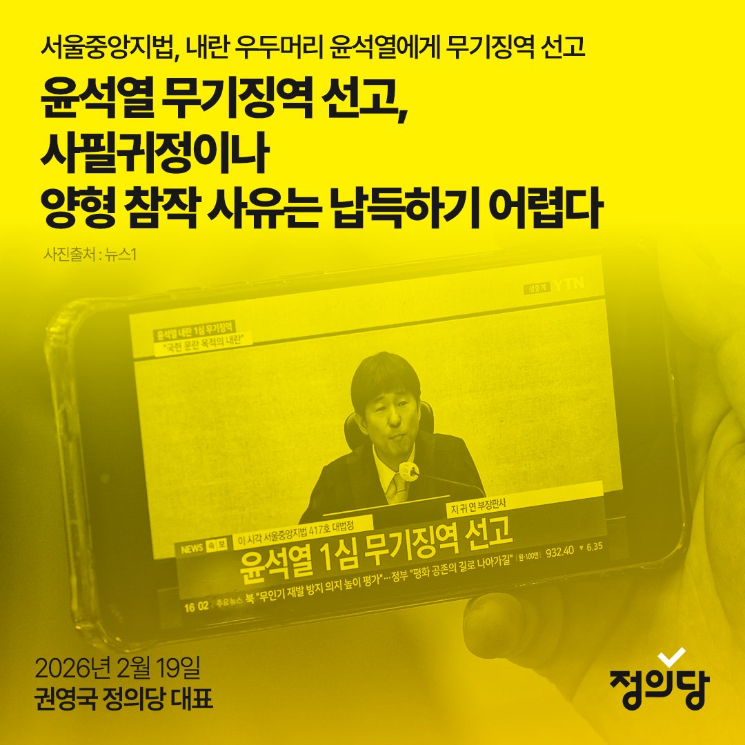 서울중앙지법이 오늘 내란 우두머리 윤석열에게 무기징역을 선고했다. 실질적인 사형폐지국인 우리나라에서 사형을 형벌에서 폐지해야 한다는 점을 고려할 때, 선고할 수 있는 최대 형량이다.
