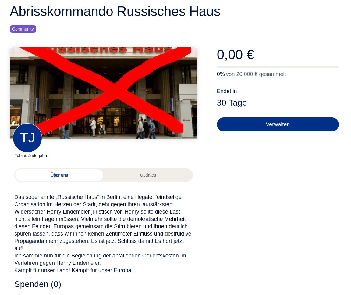 Das sogenannte „Russische Haus“ in Berlin, eine illegale, feindselige Organisation im Herzen der Stadt, geht gegen ihren lautstärksten Widersacher Henry Lindemeier juristisch vor. paypal.com/pools/c/9mNFO6…