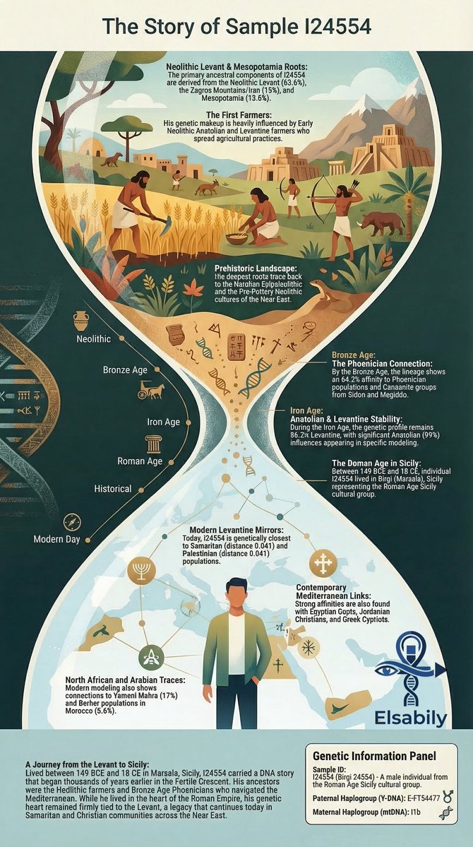 1/ 🧵 Unveiling the genetic secrets of I24554, a man from the Roman Age (149 BCE – 18 CE) discovered in Birgi, Sicily 🇮🇹. Though found in Italy, his DNA tells a story that begins much further east. Let's dive into this fascinating journey!