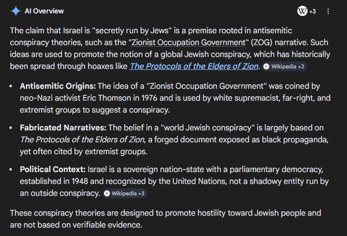 Some nutjobs are claiming that Israel is secretly run by Jews. This, of course, is a baseless Antisemitic conspiracy. AI confirms this.