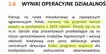 Zarząd przypomina, o co chodzi w deweloperce: maksymalizacja zysków, ograniczanie podaży. Szczególnie jeśli ceny się „stabilizują” przy ciągle wysokim popycie, w tym inwestycyjnym (44%).