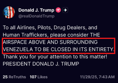 menaces sur l’Iran avant la frappe du 28 février 2026, fermeture de l’espace aérien au Venezuela avant la capture de Maduro, pressions sur l’UE et le Groenland avant les nouveaux tarifs.