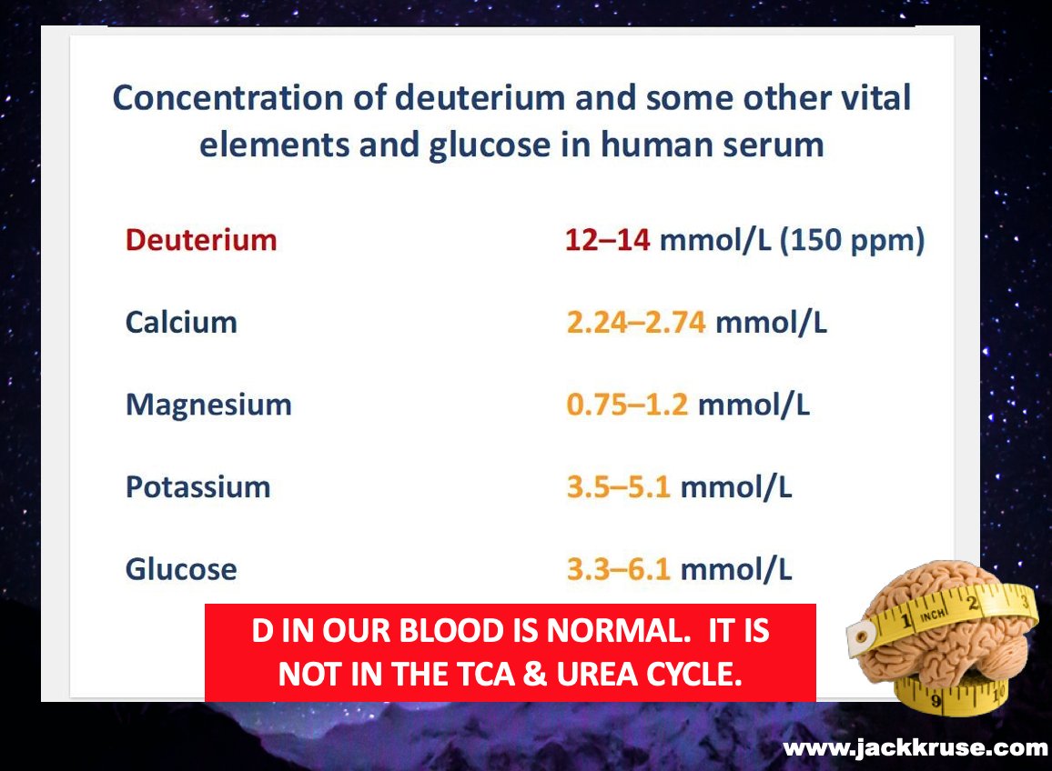 2. What does this slide really mean? The slide highlights a massive biophysical paradox that mainstream medicine largely ignores: Deuterium is the most concentrated "vital element" in human serum, yet it is functionally excluded from the mitochondria. Rockefeller medicine teaches MDs to focus on glucose and K+ but deuterium has 10X the concentration in blood where no RBC have mitochondria because of this partitioning.