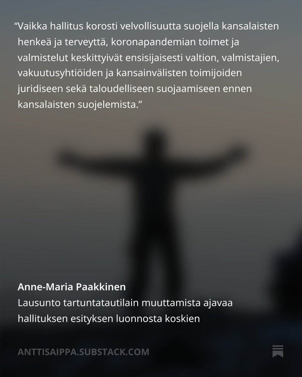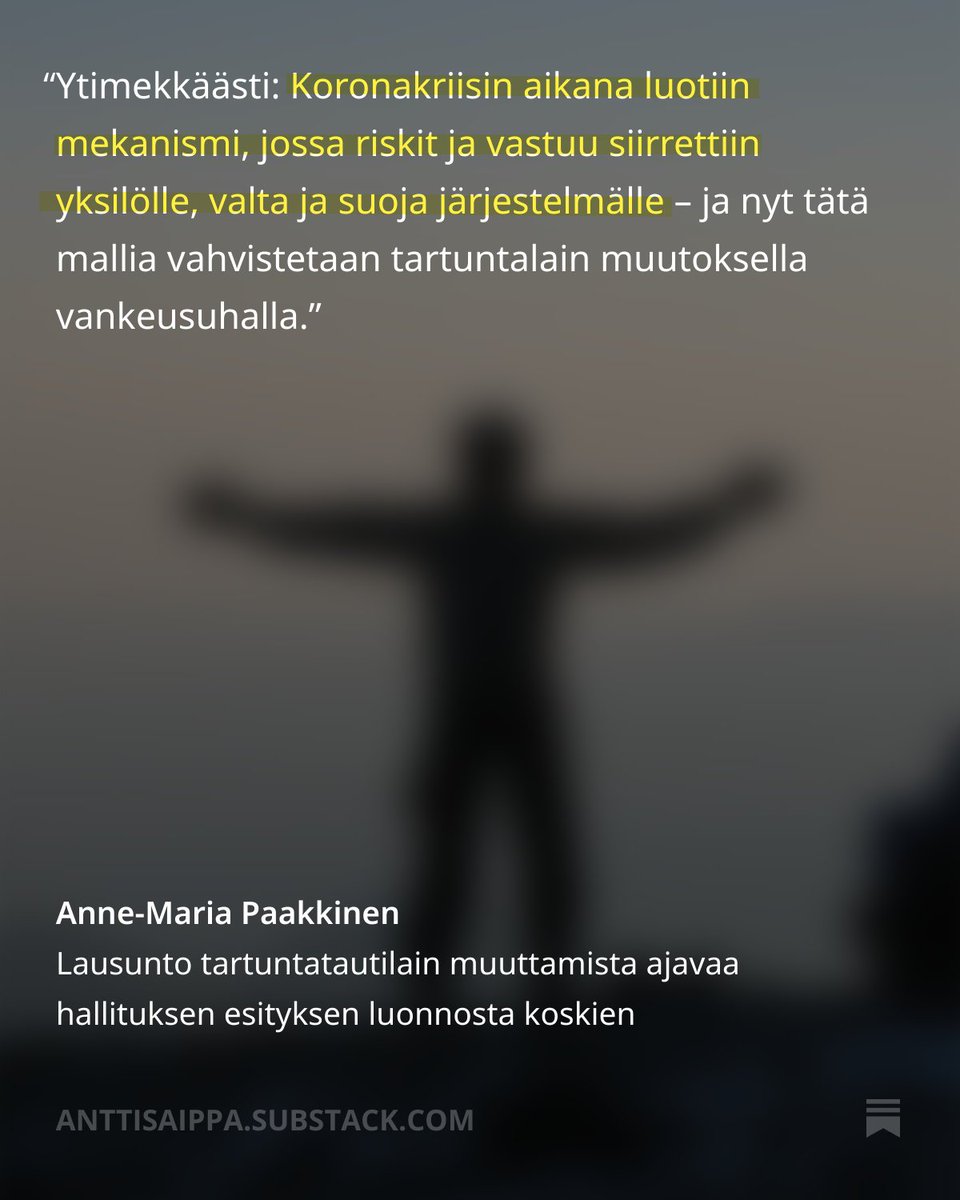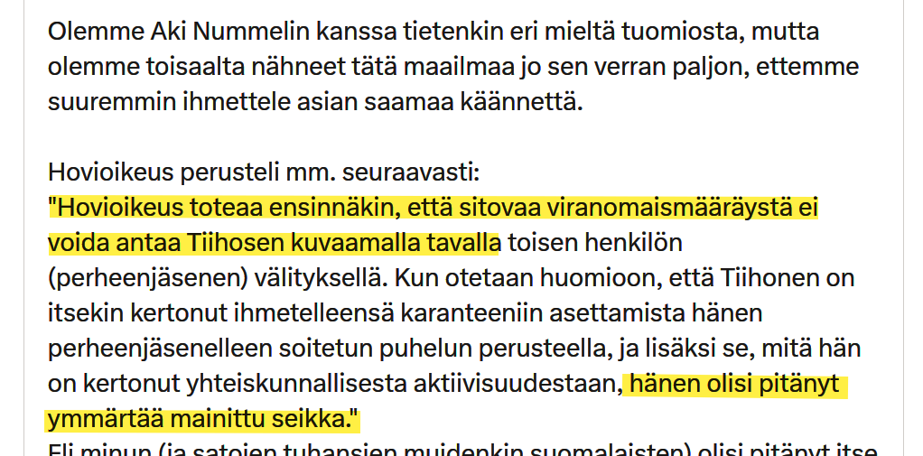 Tässä Ossi Tiihosen epistolassa tulee nyt esille juuri se, minkä monet varmasti näkivät kylvettävän jo "poikkeuksellisen pandemian" alkuvaiheissa - suositusten ja lainvoimaisten määräysten raja hämärtyi ja mielestäni hämärrettiin kansalaisille ..