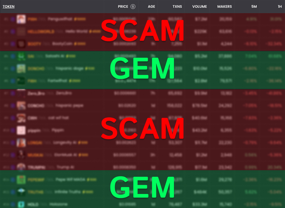 You can open dexscreener, but one of the trending tokens and get SCAMMED.