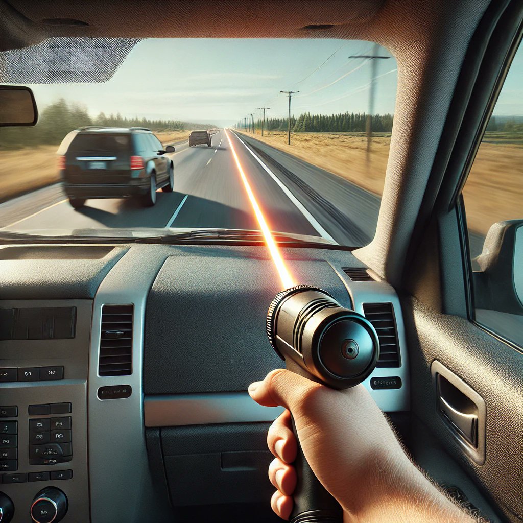 حالا فرض کنیم به جای توپ توی دستتون لیزره. نوری که از لیزر درمیاد با سرعت نور (۳۰۰ هزارک/ث) به جلو پرتاب میشه، اما برای ناظر کنار جاده سرعت لیزر، سرعت نور به اضافهی سرعت ماشین نیست! فقط همون سرعت نوره یعنی ۳۰۰ هزار کیلومتر بر ثانیه!