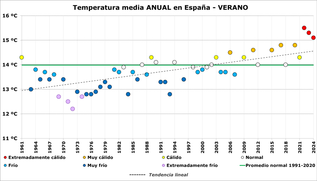 https://twitter.com/AEMET_CValencia/status/1956639397933125738El verano es la estación en la que más ha subido la temperatura, 1.7 °C en la Comunitat Valenciana en los últimos 75 años y 1.9 en el promedio de España desde 1961.