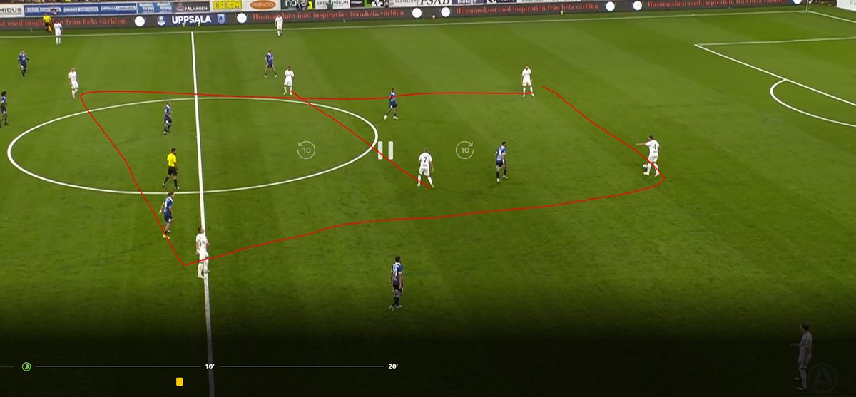 AIK försöker alltid att bygga spel i en 2-4 formation. Som bilderna nedan. Salétros brukar va den som ibland kan droppa mellan försvararna. Annars försöker dom alltid att hålla en 2-4.