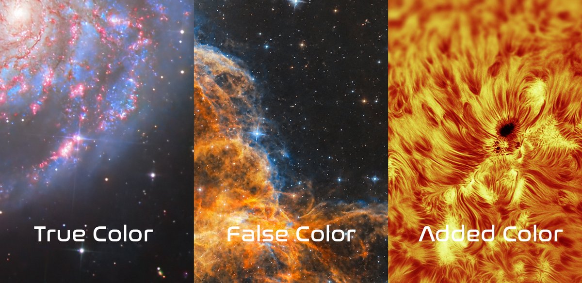 Most space photos are actually true color. What you're seeing are the colors as they would appear if your eyes were the size of dinner plates. I add that caveat because while these objects are colorful, they're actually quite dim, and your eyes can't resolve color in low light.