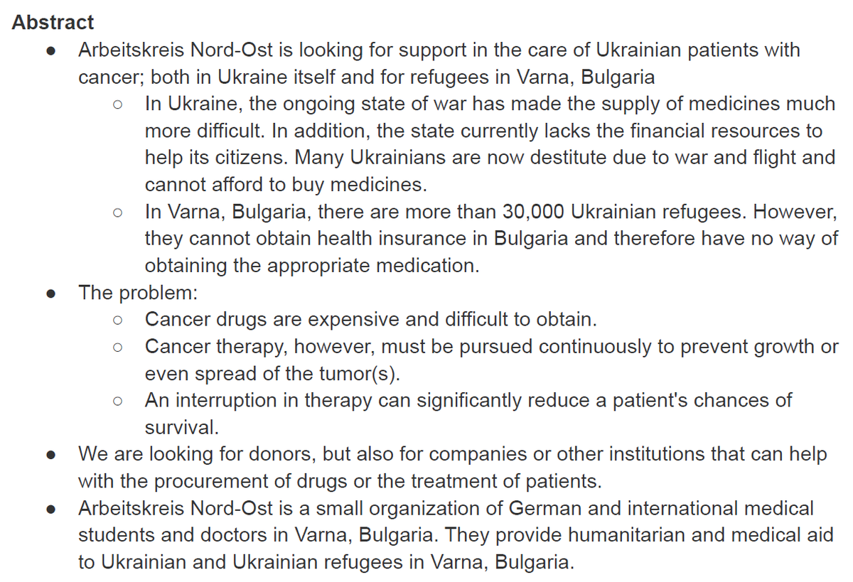 Therefore, we would like to evacuate Ella and her daughter to Germany, where she has already been promised a pacemaker replacement by a clinic.