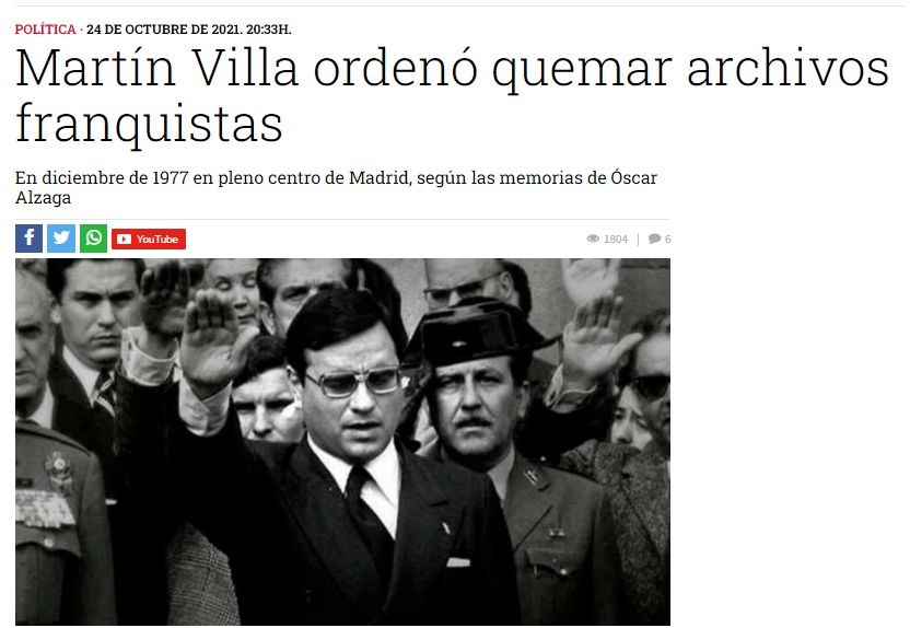 Rodolfo Martín Villa afirma que compadece para defender la transición, más que a sí mismo. Dice que la transición fue la pacificación de la guerra civil. La estrategia de la derecha franqista de hacer una elipsis con la dictadura, como si no hubiera existido.