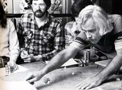 People oft blame Gary for the dire straits that TSR got into, financially/business wise. It's indirectly true. The exogenesis of UNEARTHED ARCANA actually starts with DON KAYE. Alas I don't have a photo of Don to share, so here's his "Successors", Brian & Kevin Blume w/Gary
