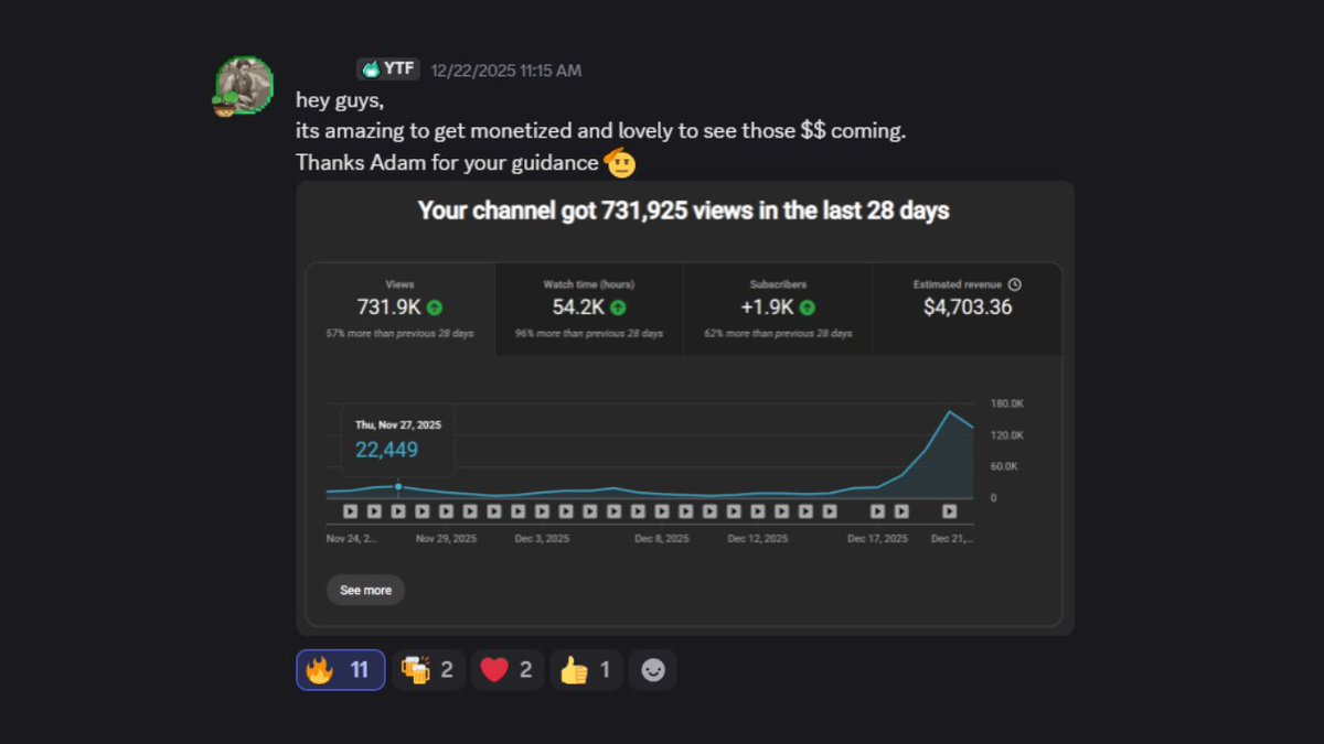 In the last few months, my student has scaled his channel to almost $5k/mo (so far)