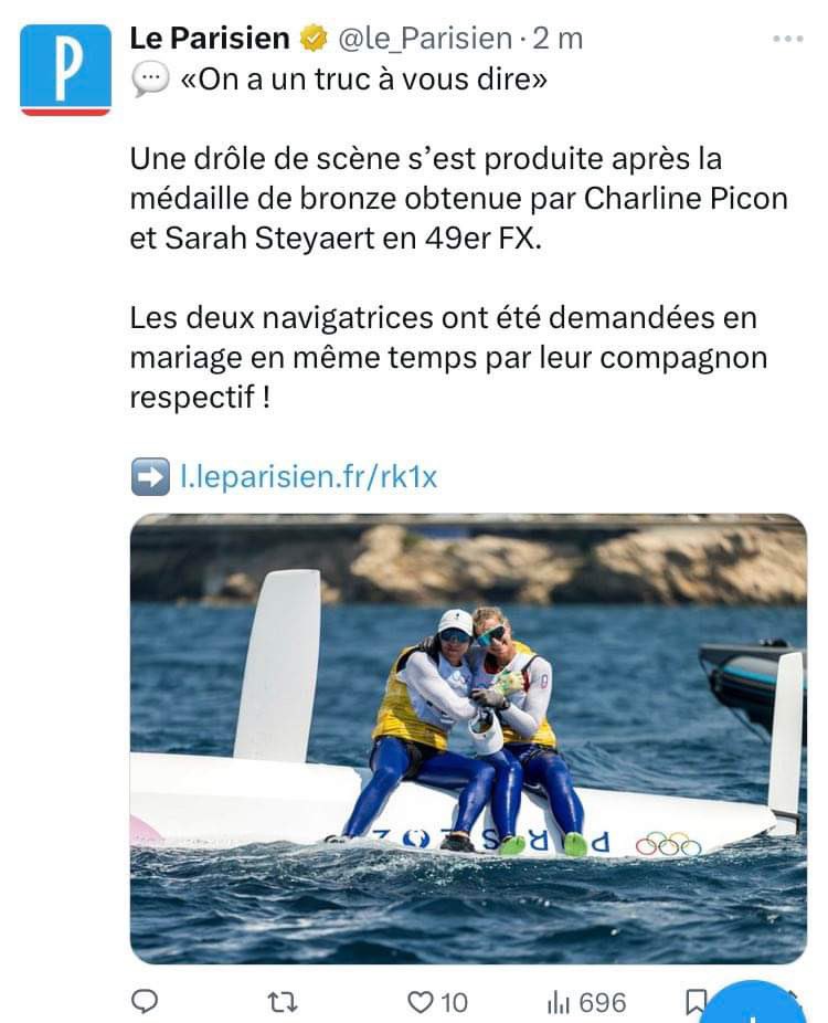 Et puisque c’est dans l’actu commençons par les françaises médaillées de bronze en voile aux JO… Apparemment leur laisser savourer leur médaille n’était pas envisageable