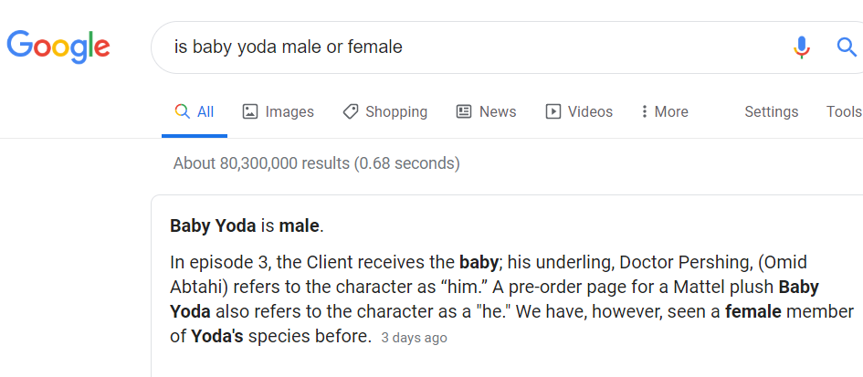 I have heard people misgendering Baby Yoda because "Yoda" ends in "-a." Yoda is male. Google confirms this.