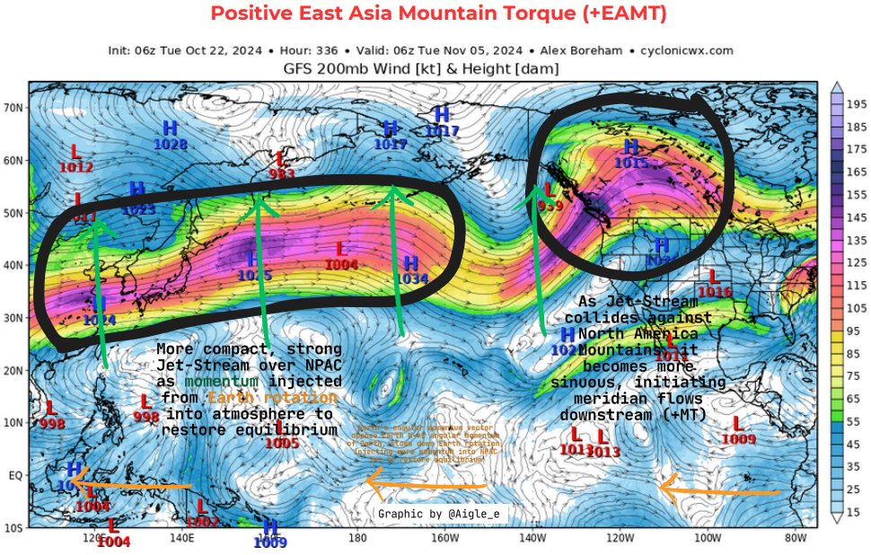 1/ l'AAM, indicateur du moment atmosphérique terrestre, a entamé sa chute, faisant suite à une forte hausse depuis mi-juillet. Cela a commencé à redistribuer les vents zonaux dans l'HN, propageant vers le sud les anomalies - & +, signature d'un retour imminent de la NAO+