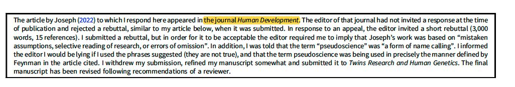 cambridge.org/core/journals/…2/ The author of the critique is Jay Joseph, a known pseudoscientist who is part of the anti-psychiatry movement. Amongst his claims is that psychopathology has no biological basis, a view that is both false and actively harmful to patients.