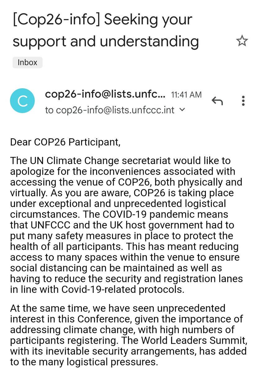 By now, you've probably heard about the lines, access and representation issues at #COP26. But it's been a really awkward, strange day, so I want to lay everything out here, because if you've wondered if #COP26 is okay, I'm gonna show you that no, #COP26 is really not okay/1