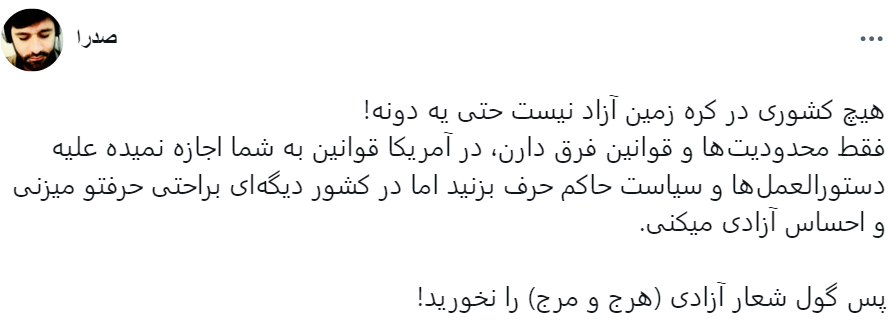 در نیوجرسی یه خانمی رو دیوارش پلاکارد زده «بایدنو گاییدم»! همسایهها ازش شکایت کردن که این چه وضع حرف زدنه. تو دادگاه محلی ۲۵۰دلار جریمه شده، دادگاه عالی ایالتی گفته غلط کردین و حق داشته!