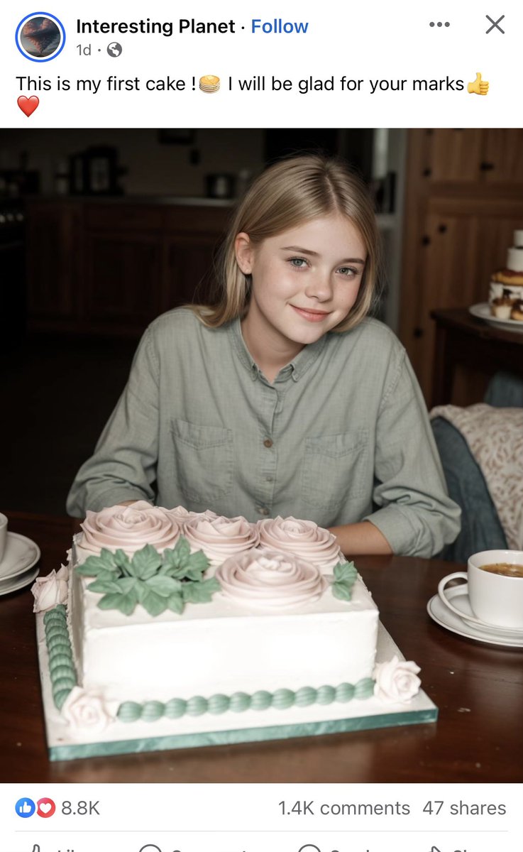 briefly looked at my mom’s facebook and it’s all AI, like every single post, and she has no idea, it’s a complete wasteland