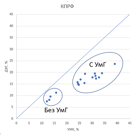 2. Тренды к понижению результата КПРФ при увеличении явки соответствуют фальсификационным "кометам" в целом по стране.